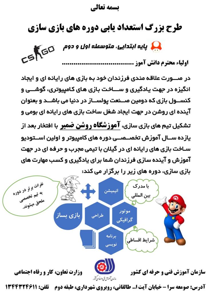 یک پاسخ به “آموزشگاه فنی و حرفه ای آزاد روشن ضمیر تقدیم می کند…”
